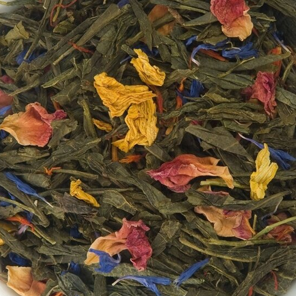 Ainesosat: vihreä tee, ruusun kukat, saflori, auringonkukan kukat, ruiskukan kukat, aromiaine.